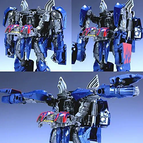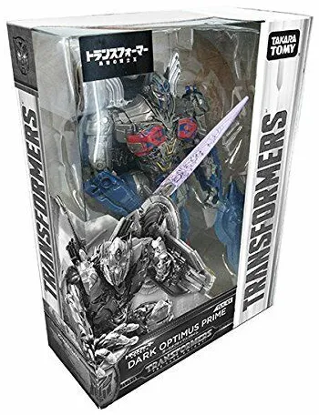 TLK-EX Dark Optimus Prime is a Japanese version of this figure released by Takara Tomy in Japan. TLK-EX Dark Optimus Prime features Japanese language on the packaging, and is a Transformers movie character from the Transformers Last Knight live action movie.