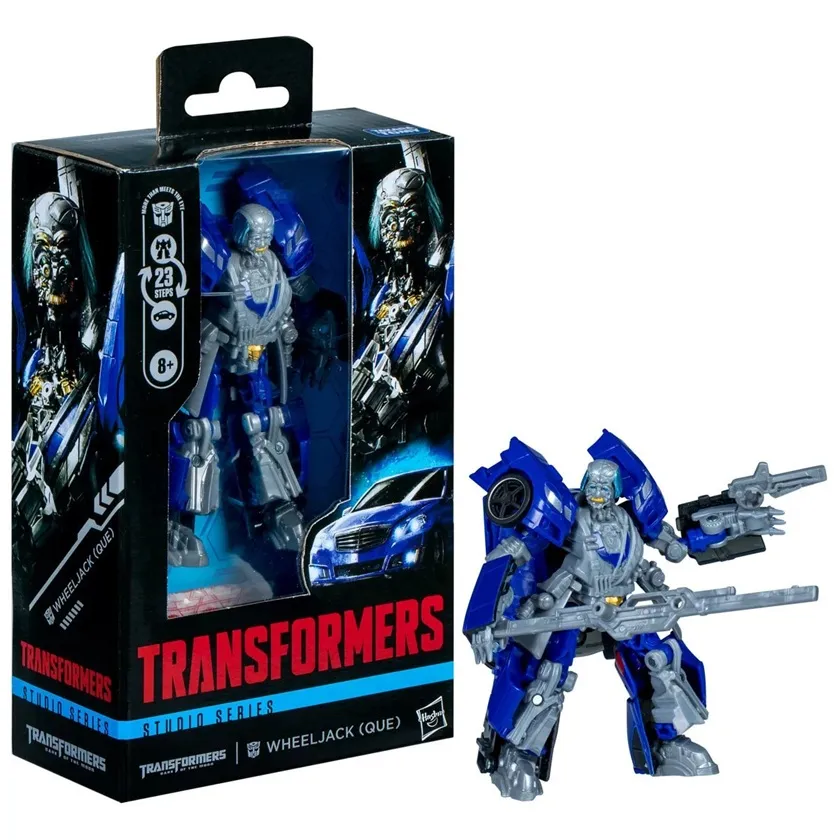 Transformers Studio Series Wheeljack (Que) is Deluxe Class and stands approximately 4.5-inches tall in robot mode. Wheeljack (Que) transforms from Car to robot and back and is screen accurate to the Transformers: Dark Of The Moon live action movie. Each Studio Series figure jumps out of the big screen and into your collection with a high attention to detail and accurate color schemes reflecting their appearance in the Transformers live action movie.