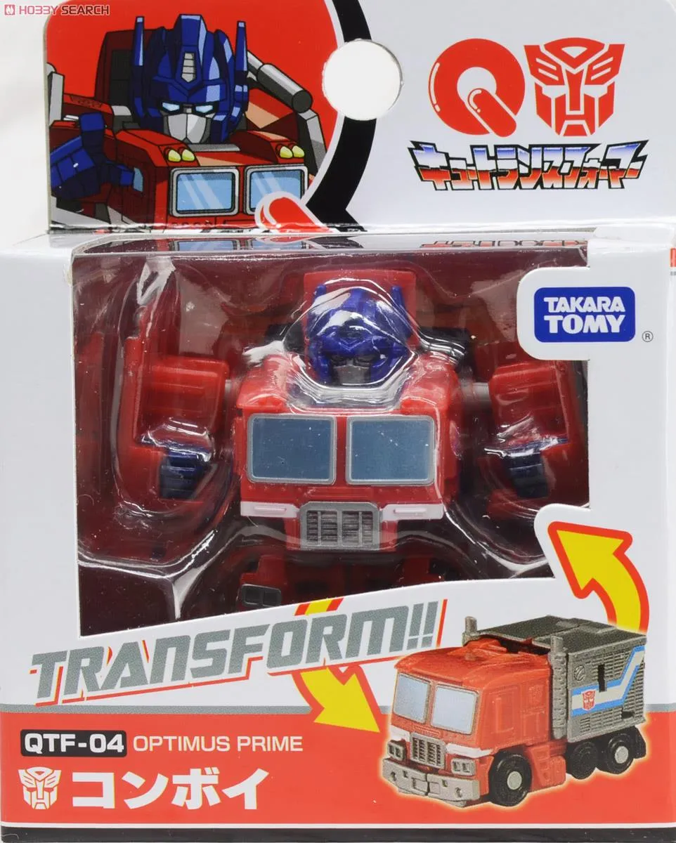 QTF-04 Convoy Optimus Prime is a super mini sized Transformers Q-Series figure that stands approximately 2" tall in robot mode. Figure transforms from robot to Semi Truck and back.