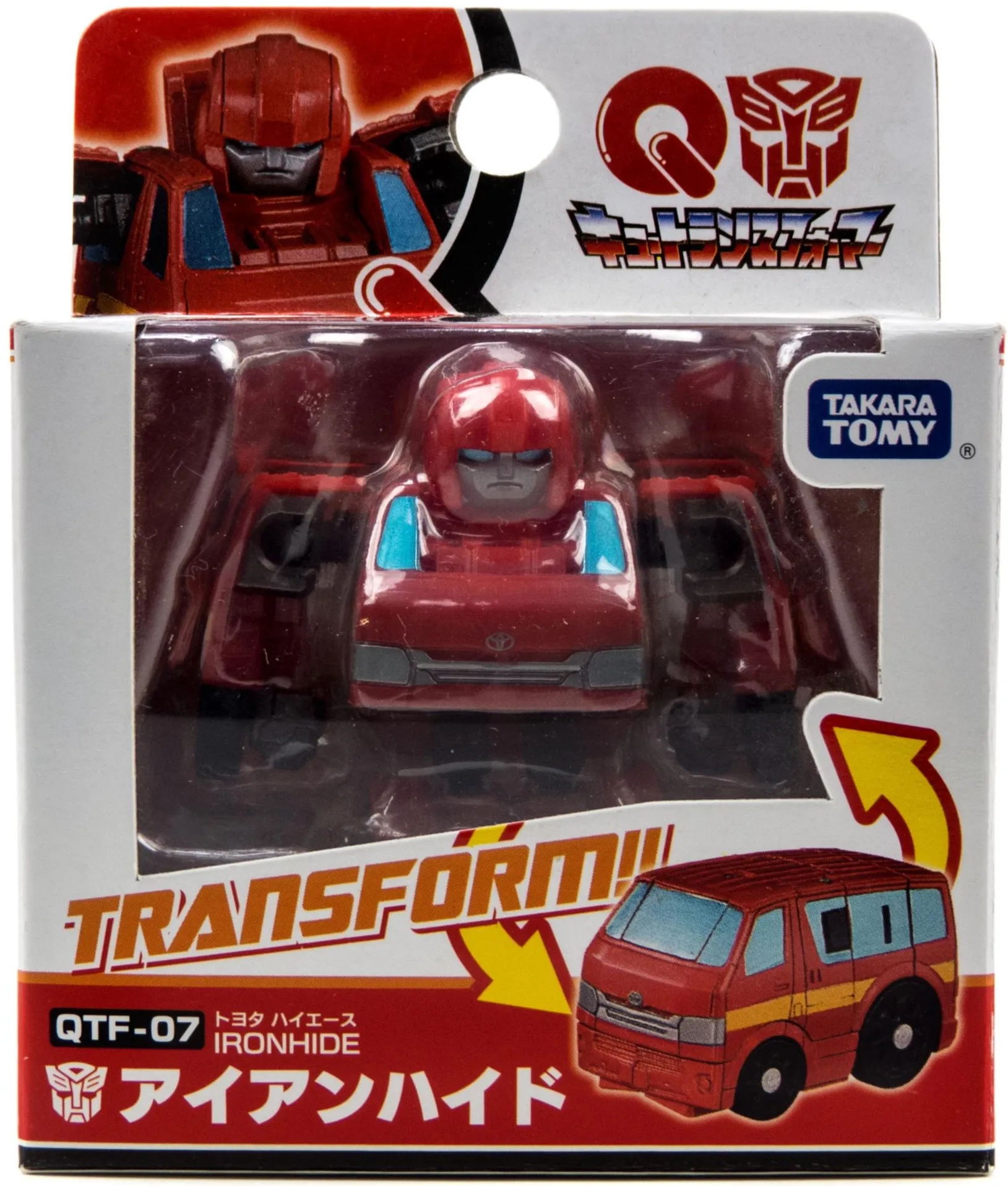 QTF-07 Ironhide is a super mini sized Transformers Q-Series figure that stands approximately 2" tall in robot mode. Figure transforms from robot to Mini Van and back.