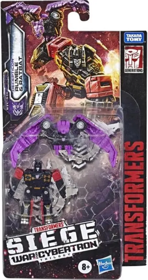 Transformers War for Cybertron Siege Chapter WFC-S46 Soundwave Spy Patrol 2 Pack Rumble & Ratbat is Micromaster Scale Scale and stands approximately 1.5 inches tall in robot mode. WFC-S46 Soundwave Spy Patrol 2 Pack Rumble & Ratbat transforms from Bat or Casseette Tape to robot and back and is screen accurate to the Transformers: War For Cybertron Siege Chapter Netflix Animated Series. Each War For Cybertron figure jumps out of the big screen and into your collection with a high attention to detail and accurate color schemes reflecting their appearance in the Transformers animated series.