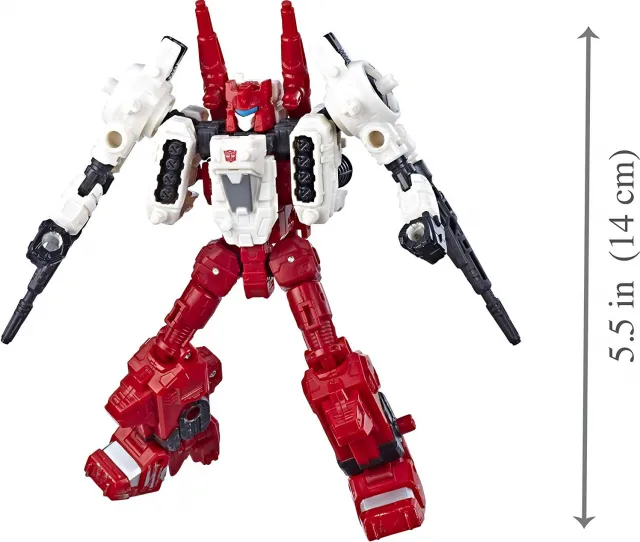 Transformers War for Cybertron Siege Chapter WFC-S22 Autobot Six-Gun Weaponizer is Deluxe Class Scale and stands approximately 5.5 inches tall in robot mode. WFC-S22 Autobot Six-Gun Weaponizer transforms from Spacecraft to robot and back and is screen accurate to the Transformers: War For Cybertron Siege Chapter Netflix Animated Series. Each War For Cybertron figure jumps out of the big screen and into your collection with a high attention to detail and accurate color schemes reflecting their appearance in the Transformers animated series.