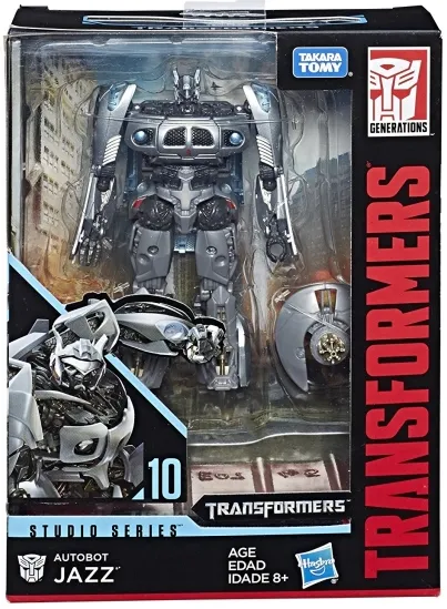 Transformers Studio Series 10 Jazz is Deluxe Class and stands approximately 4.5-inches tall in robot mode. 10 Jazz transforms from Sports Car to robot and back and is screen accurate to the Transformers: The Movie live action movie. Each Studio Series figure jumps out of the big screen and into your collection with a high attention to detail and accurate color schemes reflecting their appearance in the Transformers live action movie.