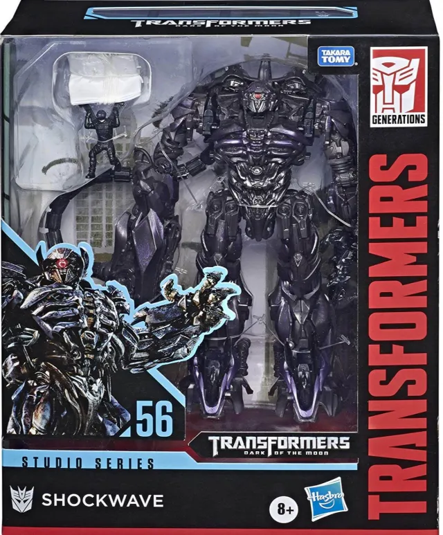 Transformers Studio Series 56 Shockwave is Leader Class and stands approximately 8.5-inches tall in robot mode. 56 Shockwave transforms from Cannon to robot and back and is screen accurate to the Transformers: Dark Of The Moon live action movie. Each Studio Series figure jumps out of the big screen and into your collection with a high attention to detail and accurate color schemes reflecting their appearance in the Transformers live action movie.