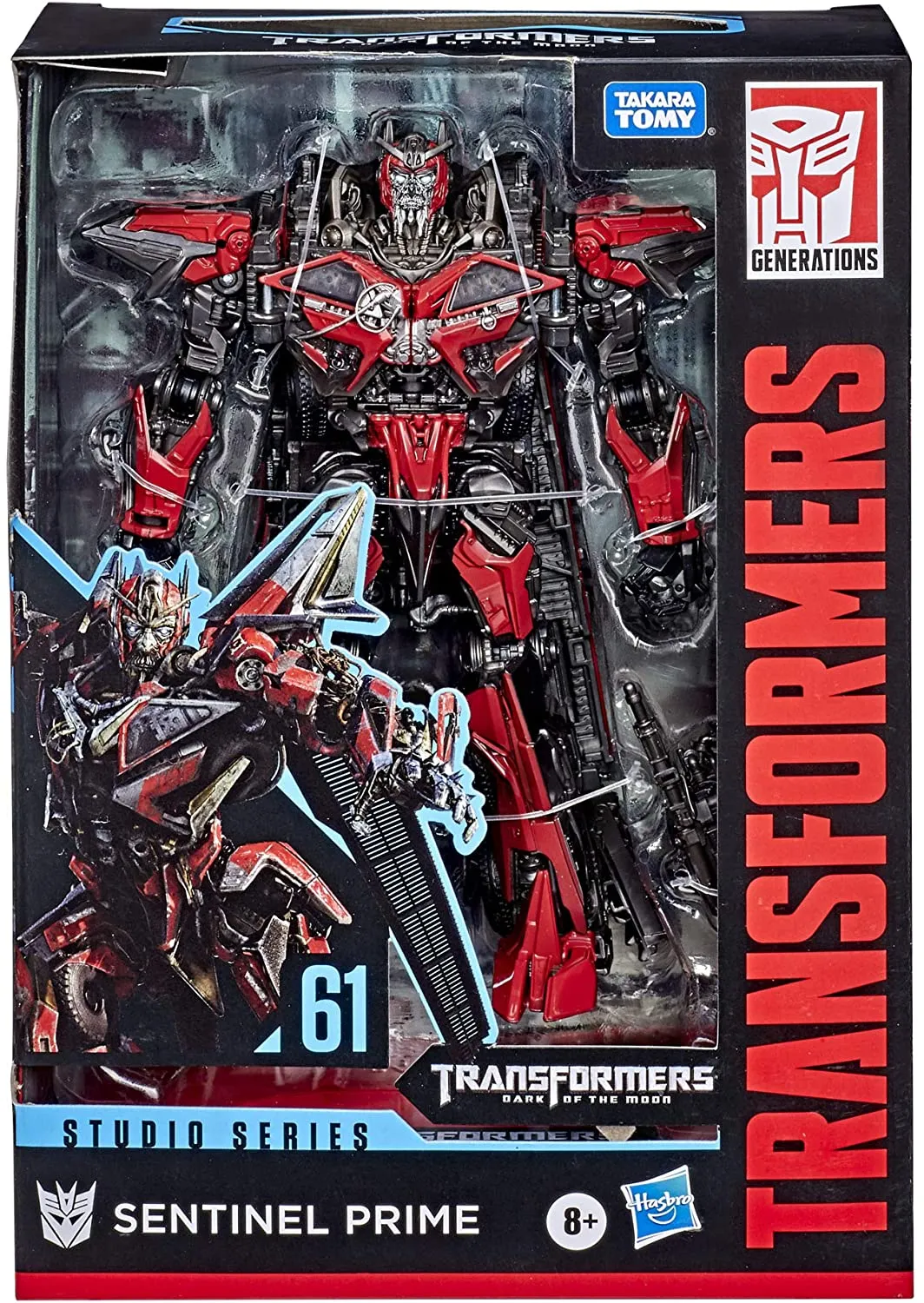 Transformers Studio Series 61 Sentinel Prime is Voyager Class and stands approximately 6.5-inches tall in robot mode. 61 Sentinel Prime transforms from Fire Truck to robot and back and is screen accurate to the Transformers: Dark Of The Moon live action movie. Each Studio Series figure jumps out of the big screen and into your collection with a high attention to detail and accurate color schemes reflecting their appearance in the Transformers live action movie.