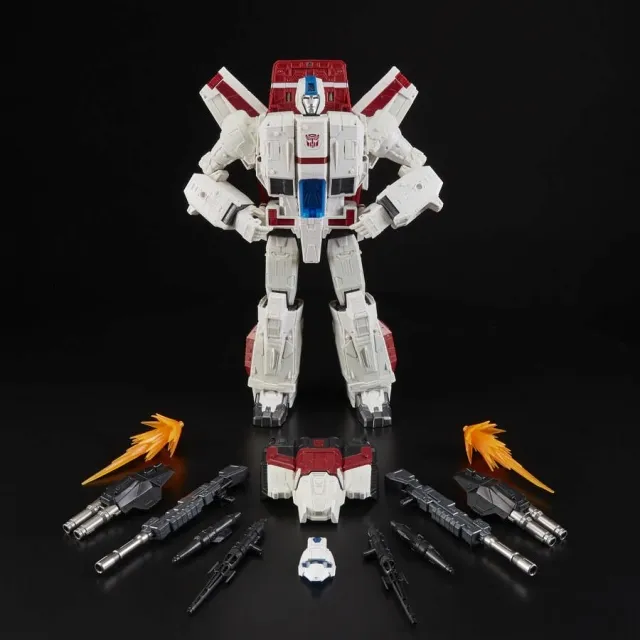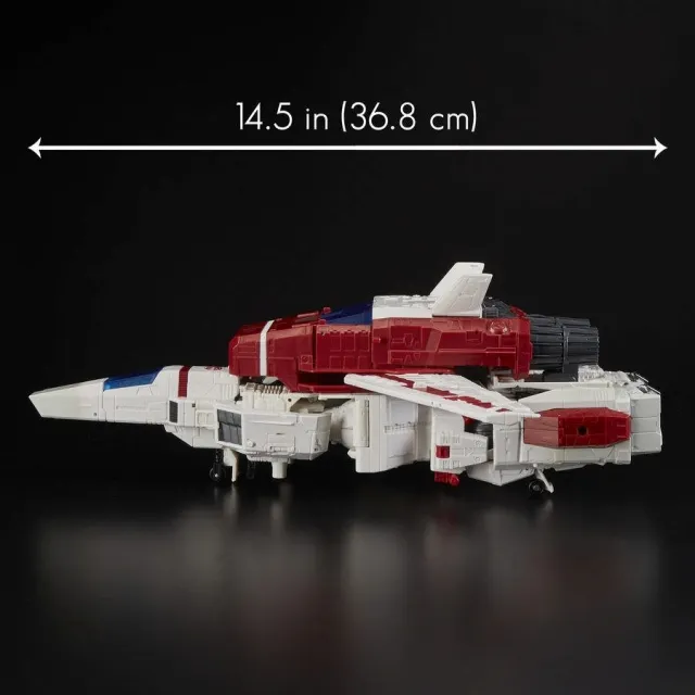 Transformers War for Cybertron Siege Chapter WFC-S28 Jetfire is Commander Class Scale and stands approximately 11.0 inches tall in robot mode. WFC-S28 Jetfire transforms from Jet to robot and back and is screen accurate to the Transformers: War For Cybertron Siege Chapter Netflix Animated Series. Each War For Cybertron figure jumps out of the big screen and into your collection with a high attention to detail and accurate color schemes reflecting their appearance in the Transformers animated series.