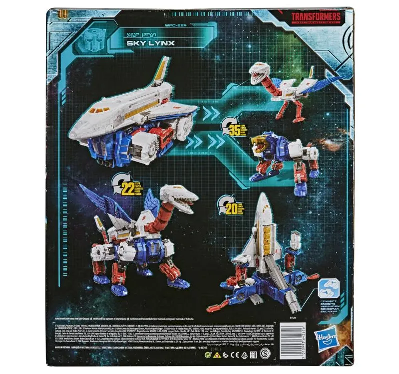 Transformers War for Cybertron Earthrise WFC-E24 Sky Lynx is Commander Class and stands approximately 11.0-inches tall in robot mode. WFC-E24 Sky Lynx transforms from Space Shuttle to robot and back and is screen accurate to the Transformers: War For Cybertron Earthrise Chapter Netflix Animated Series. Each War For Cybertron figure jumps out of the animated series and into your collection with a high attention to detail and accurate color schemes reflecting their appearance in the War for Cybertron: Earthrise series.