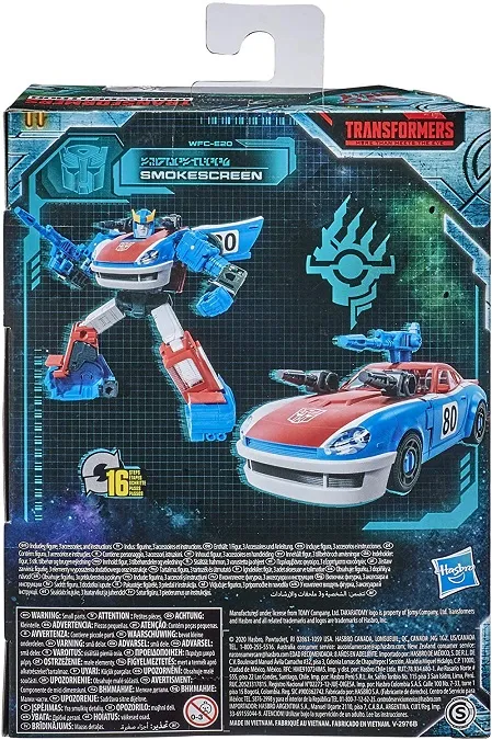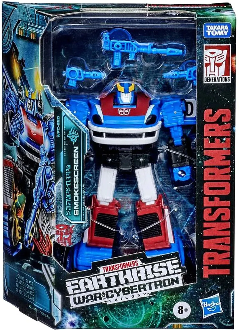 Transformers War for Cybertron Earthrise WFC-E20 Smokescreen is Deluxe Class and stands approximately 5.5-inches tall in robot mode. WFC-E20 Smokescreen transforms from Race Car to robot and back and is screen accurate to the Transformers: War For Cybertron Earthrise Chapter Netflix Animated Series. Each War For Cybertron figure jumps out of the animated series and into your collection with a high attention to detail and accurate color schemes reflecting their appearance in the War for Cybertron: Earthrise series.