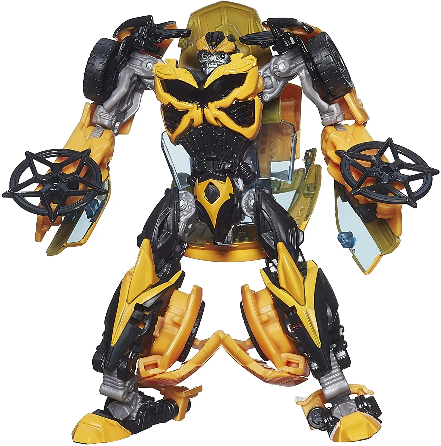 The Transformers Age of Extinction Generations Deluxe Class Bumblebee Figure was the first of all the Transformers to be friendly with a human. This unique character is capable of immediate transformation by dropping his disguise and making a beeline straight into battle.