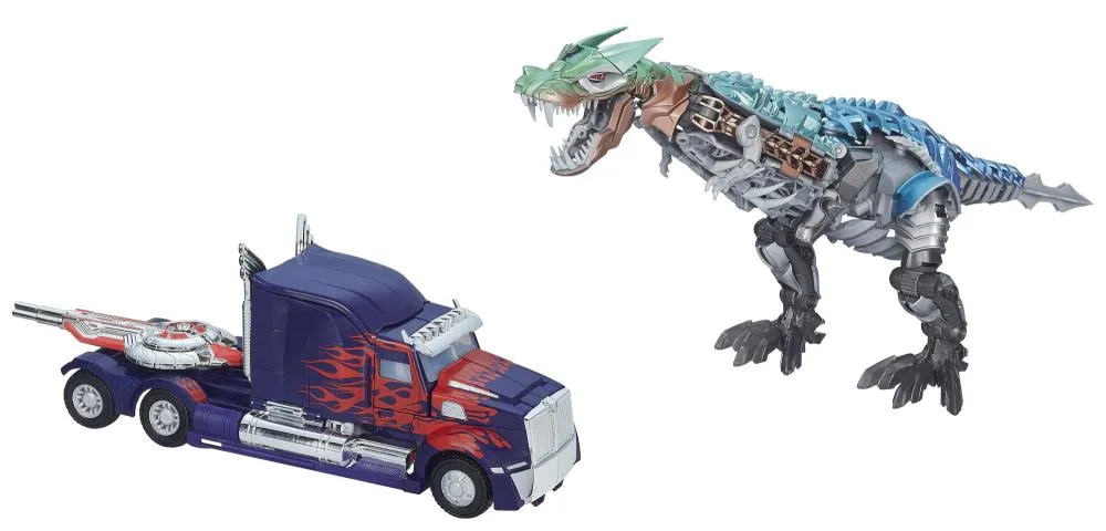 Transformers Age of Extinction Platinum Edition Leader Class Grimlock and Optimus Prime in alt Modes