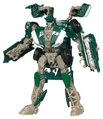Roadbuster jumps straight out of the Transformers the Movie live action film and into your collection! Roadbuster is Deluxe Class scaled, stands 5.0-inches tall and transforms from Race Car to robot and back.