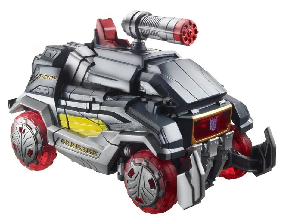 Soundblaster with Buzzsaw is part of the Transformers Generations Fall of Cybertron toyline of Transformers figures. Transformers Generations Soundblaster with Buzzsaw is Voyager Class scaled, stands 6.5-inches tall in robot mode and taransforms from Truck to robot and back.