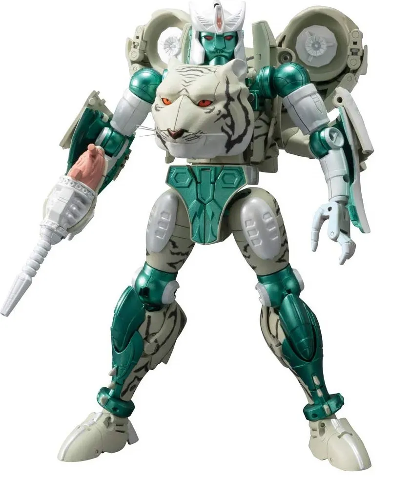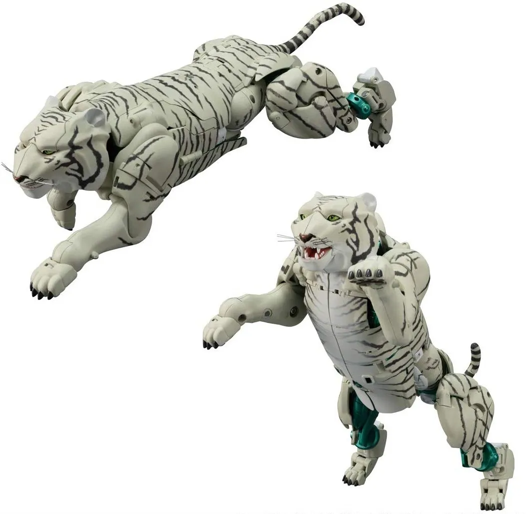 From Takara Tomy and Hasbro Transformers Masterpiece MP-50 Tigatron stands an impressive 8-inches tall in robot mode. Not only is this figure incredibly detailed, but it comes packed with an extinsive array of accessories. MP-50 Tigatron is highly articulated and transforms from a Tiger to robot and back and as a Masterpiece scaled figure scales with other MP scaled figures in the Transformers Masterpiece toyline and other Beast Wars Transformers Masterpiece figures.