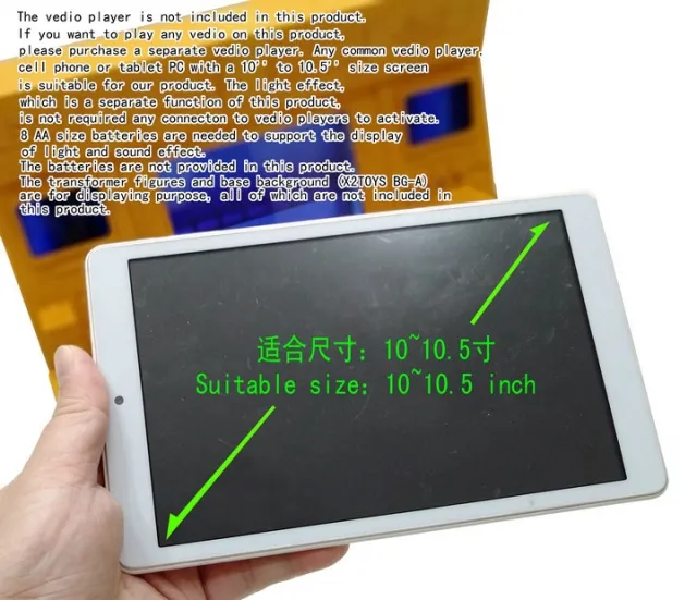BA-A2 Big Computer by X2 Toys is a Masterpiece scaled diorama type setup for use with your Masterpiece or 3rd Party Figures Toys. Computer itself is: 42cm x 38cm x 23cm / 16.5" x 15" x 9" and comes in a very large packaging. Includes light and sound effects, that requires 8 AA batteries to operate (sold separately). Additionally you can connect a 10-10.5" tablet with cable (sold separately) to the back of the Big Computer and you can use this to display what's on the tablet screen.