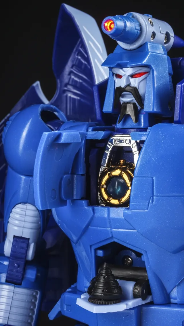 Andras stands 23cm/9in tall in robot mode, and features 3 LED components, the eyes can be glowing when LED switch on. collect 4 boxes you can combine a space battle scene of all XTB figures.