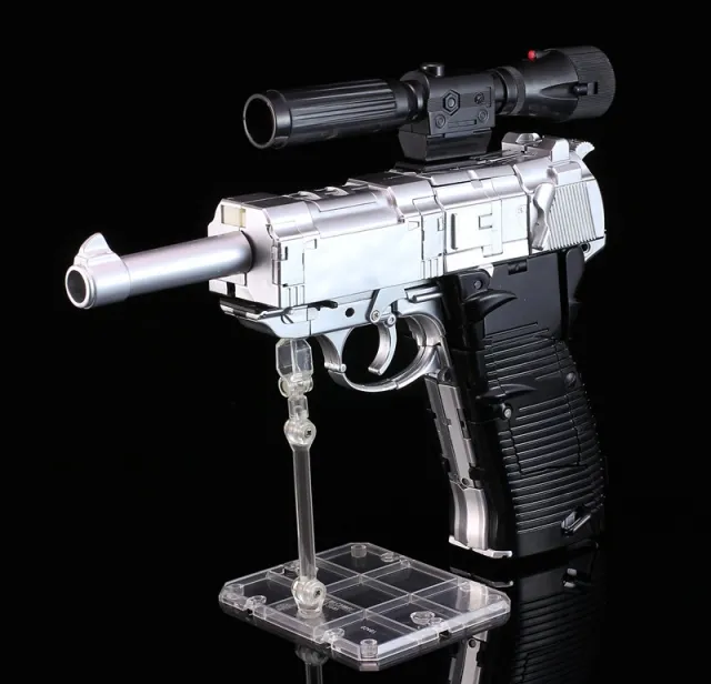 The robot mode stands approximately 24.5CM/9.6" tall. Gun barrel /feet/ waist/back with die cast parts.