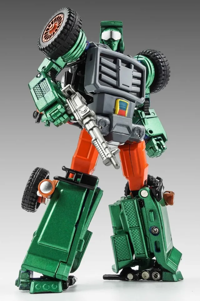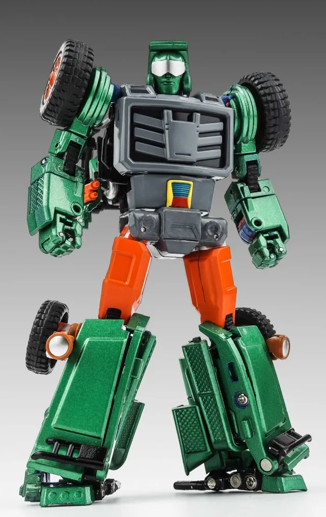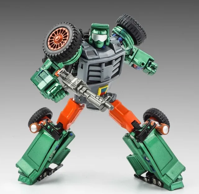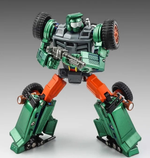 X-Transbots Master Mini Series MM-VIII: ARKOSE Green Version is limited to 500 pieces worldwide and transforms from Chenowth type fast attack vehicle (FAV) to a robot. Features solid ABS plastic and die-cast parts! Figure is MP scaled to MP bumblebee size.