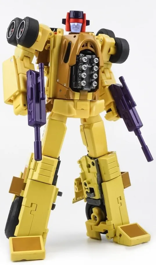 X-Transbots figure lines feature modern manufacturing process that makes their figures affordable while maintaining high quality and solid construction. Built from a combination of ABS plastic, nylon and rubber for the tires, most figures also contain some type of diecast parts and feature clear windows for their alternate modes. Updated G1 color schemes and great articulation/ratcheting of joints make these figures visually spectacular.